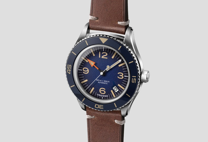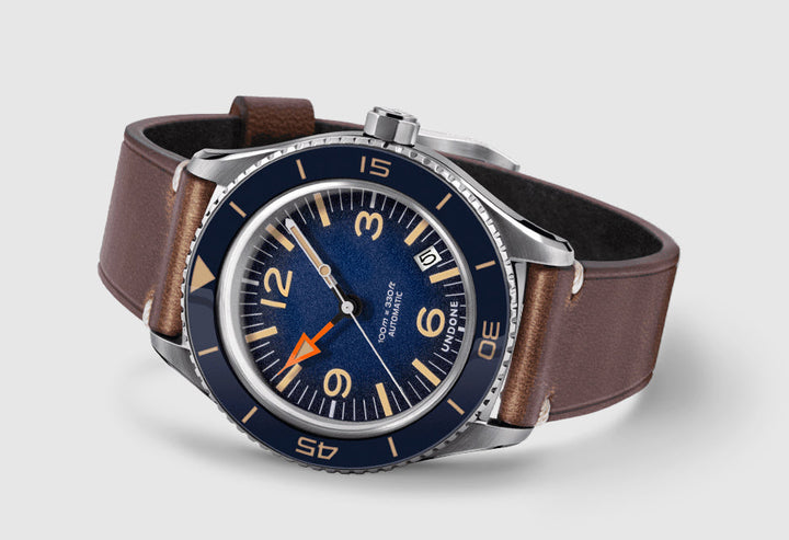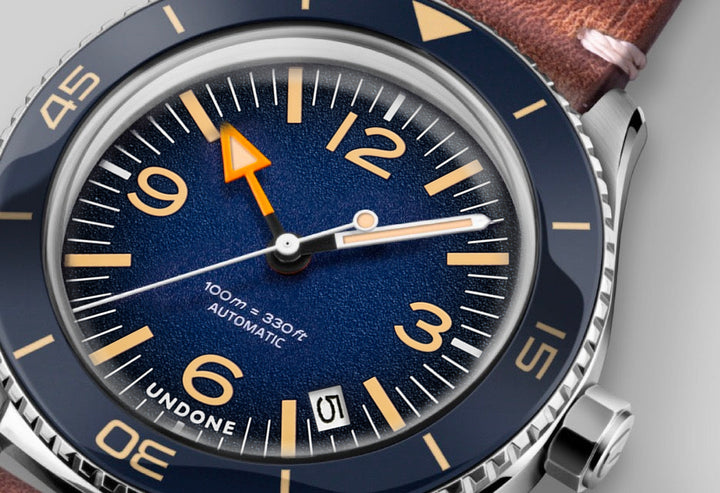A gutsy, good-looking tool watch that combines high-performance functionality with vintage aesthetics. Featuring an iconic orange hour hand, ultra-domed plexi crystal, blue graduated bezel and blue dial, this 40mm UNDONE Basecamp is designed with the style, comfort and durability for everyday wear. Yes, you may have found the best affordable automatic watch under 500 USD out there!