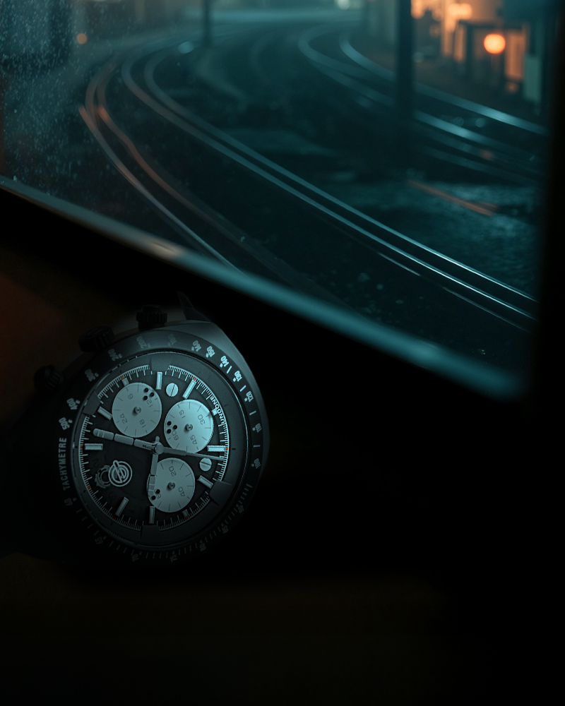 Designed from 316L stainless steel, the case color mirrors the Tachikoma’s distinctive body, while the tricompax dial pays homage to the AI tank’s three “eyeballs.”