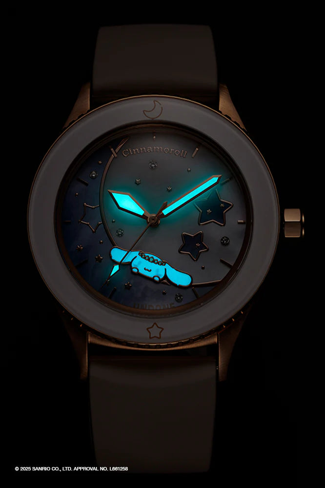 The “UNDONE × Cinnamoroll Watch – Moonbeam Cuddle” wraps your wrist in the gentle warmth of a night sky.