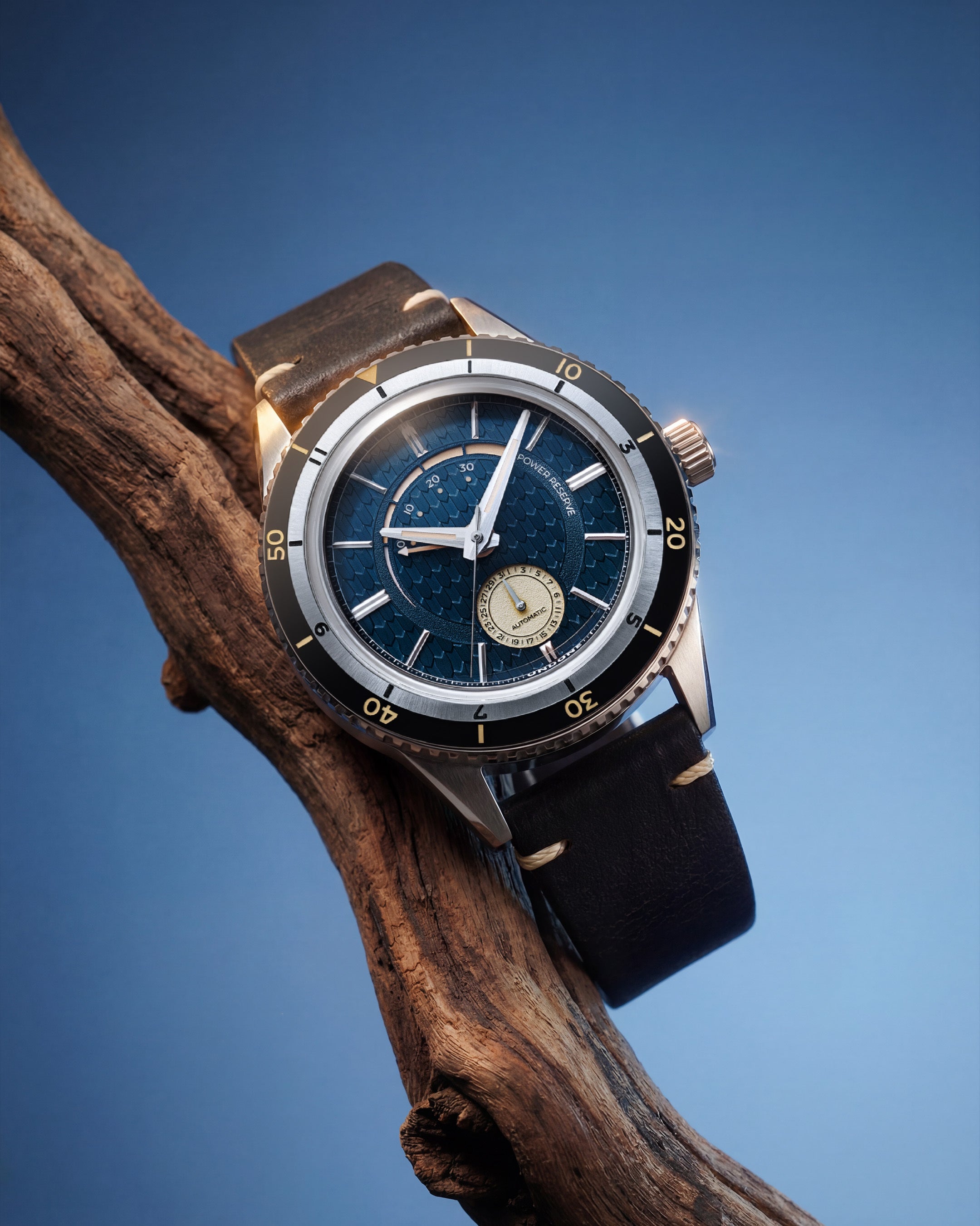 At the center of the dial sits the power reserve indicator, a quiet expression of mechanical balance. As the watch is worn, energy accumulates. As it rests, that energy gradually returns to stillness. Time is not only measured, but managed.