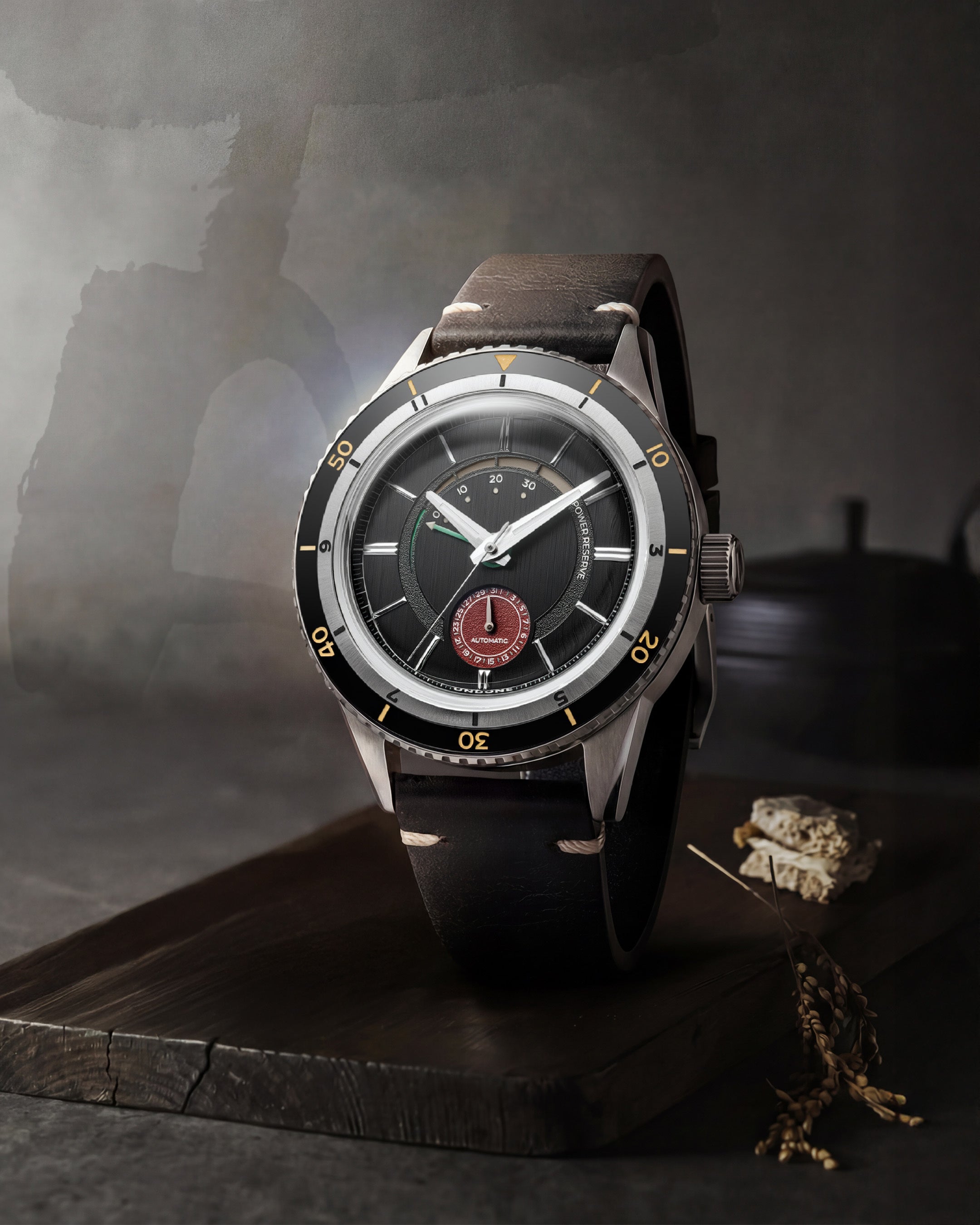 At the center of the dial sits the power reserve indicator, a quiet expression of mechanical balance. As the watch is worn, energy accumulates. As it rests, that energy gradually returns to stillness. Time is not only measured, but managed.