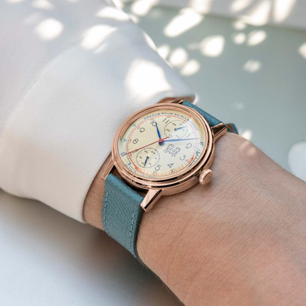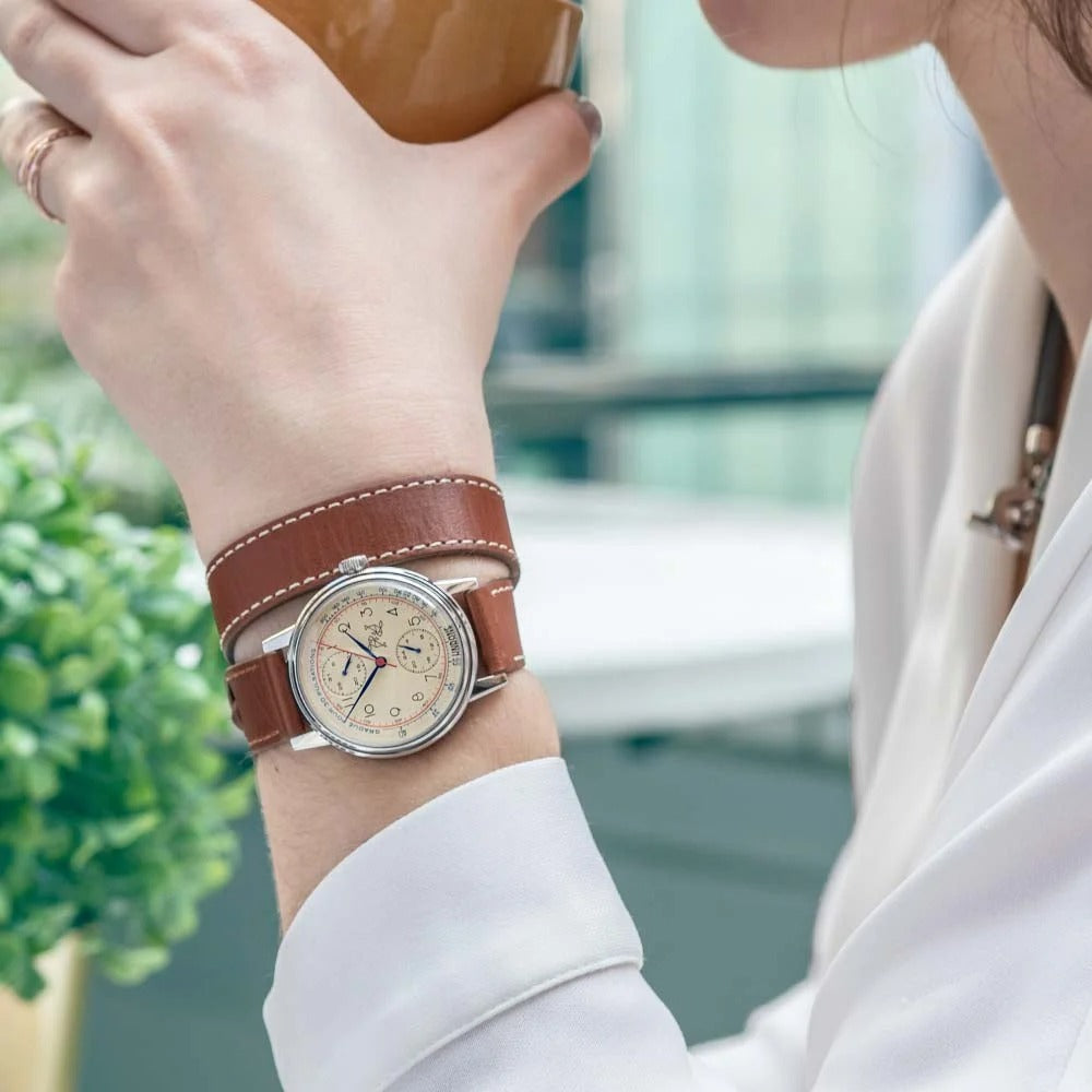 Your face speaks volumes of who you are and where you have been. Inspired by the elegant case and dial designs from the mid-1900s, the Killy exudes character with its ivory colour, accented by blue and red details.